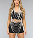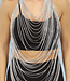 Dieses Oberteil ist absolut unverzichtbar und zieht sofort die Aufmerksamkeit auf sich. Es ist aus silbernen Strassketten gefertigt. Das Oberteil hat eine Wasserfallform. Es ist sehr einfach, das Oberteil zu schließen, da zwei Ketten mit Karabinerverschlüssen am Rücken befestigt sind.