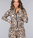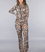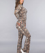 Dieses zweiteilige Set ist aus Stretchstoff gefertigt und hat einen coolen Schlangenprint. Die Weste hat lange Ärmel und einen schwarzen Reißverschluss über die gesamte Vorderseite. Außerdem verfügt die Weste über Daumenlöcher. Die Hose hat eine hohe Taille und ausgestellte Beine. Auf der Rückseite ist die Hose mit einem Scrunch versehen.