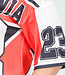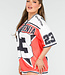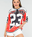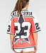 Dieses einzigartige Baseball-T-Shirt ist perfekt für einen trendigen Freizeit-Look. Der luftige Stoff mit kleinen Löchern und die lockere Passform bieten optimalen Komfort. Die auffälligen Zahlen und Texte in Dunkelblau auf leuchtend rotem Hintergrund sorgen für einen farbblockierenden und sportlichen Effekt. Außerdem sind die kurzen Ärmel und der V-Ausschnitt bequem, während die Seiten mit dezenten Bordüren versehen sind. Dieses T-Shirt ist eine ausgezeichnete Wahl für einen frischen und sportlichen Look.
