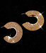 Auffällige runde Ohrringe mit einer dicken, halbrunden Form, die vollständig mit kleinen Strasssteinen besetzt sind. Die Innenseite hat eine glänzende Metallic-Oberfläche, die einen schönen Kontrast zur strukturreichen Außenseite bildet. Der Ohrring schmiegt sich eng an das Ohr an und hat ein leicht gebogenes Design für einen eleganten Look. Perfekt als Statement-Accessoire zu sowohl lässigen als auch festlichen Outfits.