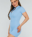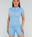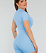 Dieser trendige kurze Sportanzug in einem leuchtenden Blau bietet die perfekte Kombination aus Stil und Sportlichkeit. Das Material ist eine hochwertige Stretch-Mischung, die sich dem Körper perfekt anpasst, ohne zu drücken. Die kurzen Ärmel sorgen für einen luftigen Look, während der hohe Ausschnitt mit glattem Reißverschluss ein einfaches An- und Ausziehen oder Schließen in gewünschter Höhe ermöglicht. Die sorgfältig platzierten Nähte betonen die Taille und sorgen für einen schmeichelhaften Effekt. Dieser Playsuit ist vielseitig und kann sowohl bei sportlichen Aktivitäten als auch bei Freizeitausflügen getragen werden.