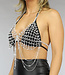 Superhelle Halskette mit Strasssteinen für einen fröhlichen Festival- oder Sommerlook. Diese Körperkette lässt sich gut mit einem Bikini oder einem Kleid kombinieren. Die Möglichkeiten sind endlos.