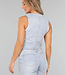 Dieses gestreifte Top im Gilet-Stil ist aus einem feinen Baumwoll-Denim-Stoff mit Stretch gefertigt. Das Oberteil ist ärmellos und hat einen Ausschnitt, der in einem V verläuft. Auf der Vorderseite befinden sich drei Knöpfe, um die Weste zu schließen. Sie können dieses Oberteil schön mit einem langärmeligen Top oder einer Bluse kombinieren!