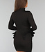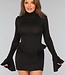 Dieses Kleid ist aus einem feinen, weichen Stretch-Stoff gefertigt. Es hat einen taillierten Bodycon-Schnitt und lange Ärmel. Die Ärmel sind am unteren Ende ausgestellt. An der Taille hat das Kleid ein schönes Rüschendetail an beiden Seiten. Das Kleid hat keinen Stretchanteil, lässt sich aber durch die vielen Stretchanteile leicht an- und ausziehen.