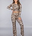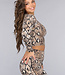Dieser Zweiteiler ist aus einem Stretch-Stoff gefertigt und mit einem tollen Schlangenprint versehen. Das Oberteil hat lange Ärmel und ist tailliert geschnitten. Außerdem hat das Oberteil Daumenlöcher an der Unterseite der Ärmel. Die Hose hat eine hohe Taille und ausgestellte Beine. Hinten ist die Hose mit einer Kräuselung versehen.