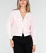 Diese rosa Strickjacke hat eine grob gestrickte Zopfstruktur und eine bequeme Passform. Der V-Ausschnitt geht in einen Knopfverschluss mit zwei Knöpfen auf der Vorderseite über. Über den Körper und die Ärmel sind mehrere dekorative Schleifendetails verteilt. Die langen Ärmel sind mit breiten gerippten Bündchen versehen, ebenso wie der Saum und der Halsausschnitt. Die Strickjacke ist aus einem gestrickten Stretchstoff gefertigt.