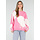 Dieser rosa Pullover ist aus Strickstoff gefertigt und hat einen Rundhalsausschnitt mit Rippbündchen. Das Modell fällt locker und hat lange Ärmel mit gerippten Bündchen. Auf dem Pullover sind große weiße Herzen aufgebracht, wobei vertikale Stofffransen herunterhängen und für ein auffälliges Detail sorgen. Der Saum ist mit einem elastischen Rippbündchen versehen, das für eine gerade Passform sorgt.