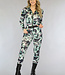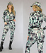 Sexy Armee-Kostüm mit langen Ärmeln und einem Kragen. Die Vorderseite hat einen Reißverschluss, der das An- und Ausziehen erleichtert. Außerdem kann man mit dem Reißverschluss das Dekolleté bestimmen. Der gesamte Anzug ist elastisch und hat einen Tarnaufdruck. Dazu gibt es eine passende Mütze und einen Gürtel. Der Gürtel kann durch die drei Schlaufen gefädelt werden. Auf beiden Oberschenkeln befinden sich zwei Taschen mit Pattenverschluss.