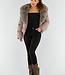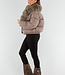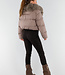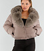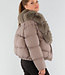 Taupe Pufferjacke mit breitem Kunstfellkragen