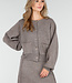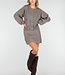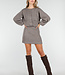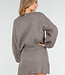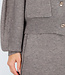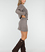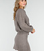 Dieses zweiteilige Set in Taupe besteht aus einer Strickjacke und einem passenden Rock. Die Strickjacke hat einen Rundhalsausschnitt, lange Ärmel und glänzende Knöpfe auf der Vorderseite. Außerdem sind zwei große aufgesetzte Taschen auf der Vorderseite zu sehen. Der Rock ist kurz geschnitten, figurbetont und hat einen elastischen Bund, der für einen bequemen Sitz sorgt. Beide Teile sind aus einem weichen Strickstoff gefertigt und haben dezent sichtbare Nähte an den Seiten. Das Set kann sowohl zusammen als auch separat getragen werden.