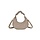Taupefarbene Handtasche in Wildlederoptik mit Halbmondform. Mit einem geriffelten Griff und einem abnehmbaren Schulterriemen. Das Hauptfach wird mit einem goldfarbenen Reißverschluss verschlossen und ist mit einem kleinen Innenfach gefüttert. Die Tasche hat Kunstlederakzente für mehr Stabilität.