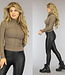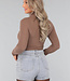 Beigefarbener Rollkragenpullover aus geripptem Stoff