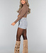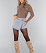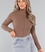 Beigefarbener gerippter Rollkragenpullover