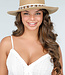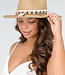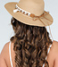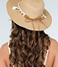 Taupefarbener Strandhut mit Band in Wildlederoptik und Kaurimuscheln