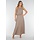 Dieses taupefarbene zweiteilige Set besteht aus einem Neckholder-Top und einem langen Rock aus Stretch-Stoff. Das Oberteil hat einen hohen Ausschnitt und wird mit einem Knopfverschluss am Hals geschlossen. Der passende Rock ist lang, leicht ausgestellt und sitzt an der Taille eng an. Dank des Stretchmaterials trägt sich das Set angenehm und geschmeidig.