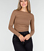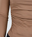 Dieses taupefarbene Stretch-Oberteil ist aus einem weichen, elastischen Stoff gefertigt, der sich schön an den Körper anschmiegt. Das Oberteil hat einen Rundhalsausschnitt und lange Ärmel. An beiden Seiten befindet sich ein dezentes Falten-Detail, das für einen schmeichelhaften Effekt sorgt. Dank des dehnbaren Stoffes ist dieses Teil bequem und leicht zu kombinieren. Ein ideales Basic mit dem gewissen Extra.