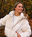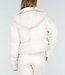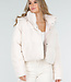 Diese weiße Teddy-Steppjacke ist aus weichem Fleece mit gesteppter Struktur gefertigt. Die Jacke hat einen hohen Kragen und eine abnehmbare Kapuze, die mit einem Reißverschluss befestigt oder abgenommen werden kann. Das kurze Modell reicht bis zur Taille und hat lange Ärmel. Die Jacke wird vorne mit einem Reißverschluss und zusätzlichen Druckknöpfen geschlossen. Gesteppte Bahnen sorgen für ein voluminöses und gleichmäßiges Finish. Am unteren Rand der Jacke befindet sich ein verstellbarer Kordelzug, mit dem der Saum enger gezogen werden kann.