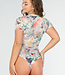 Kurzärmeliger Mesh-Body mit weichem, mehrfarbigem Blumendruck