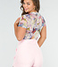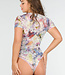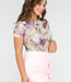 Kurzärmeliger Mesh-Body mit pastellfarbenem Blumendruck in zarten Tönen