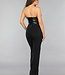 Dieses trägerlose Oberteil ist aus einem Stoff in Lederoptik gefertigt. Ein plissiertes Detail verläuft in der Taille. Das Oberteil ist trägerlos und hat daher keine Ärmel. Außerdem hat das Oberteil einen verdeckten Reißverschluss an der Seite.