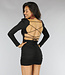 Dieses schöne Kleid hat lange Ärmel und einen quadratischen Ausschnitt. Das Kleid hat ein Bodycon-Modell und hat plissierte Details. Der Blickfang des Kleides ist der schöne offene Rücken, der ein Riemendetail enthält. Die Schultern des Kleides sind leicht gepufft und das Kleid hat einen schönen Knitter über dem Gesäß.