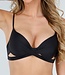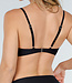 Schwarzes Bikinioberteil mit gekreuztem Band unter dem Cup