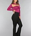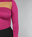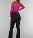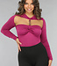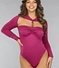 Dieser Body ist aus einem Stretch-Stoff gefertigt. Er hat lange Ärmel mit einem schönen Ausschnitt oberhalb der Brust. Außerdem hat der Body ein schönes goldenes Ring-Detail am Ausschnitt. Im Brustbereich ist der Body gedreht und mit nicht herausnehmbaren Polstern versehen, die das Tragen eines BHs überflüssig machen. Unten hat der Body einen Hakenverschluss, der aus zwei Haken besteht, die in drei Positionen verstellt werden können.