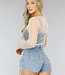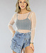 Dieses durchsichtige Oberteil ist aus einem Netzstoff gefertigt und mit süßen Perlen besetzt. Das Oberteil hat lange Ärmel und einen ziemlich hohen Ausschnitt.