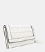 Diese weiße Clutch ist aus Kunstleder mit einem geflochtenen Muster auf der Vorderseite gefertigt. Die Tasche hat eine schlichte rechteckige Form und schwarze Paspeln an den Rändern. Dank des abnehmbaren langen Riemens kann dieses Modell sowohl als Handtasche als auch als Umhängetasche getragen werden. Das kompakte Design eignet sich zum Mitnehmen von wichtigen Utensilien.