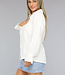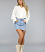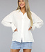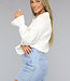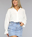 Diese weiße Bluse ist aus einem schönen, weichen Musselinstoff gefertigt. Sie hat außerdem lange Ärmel, die am Ende in einen Trompetenärmel übergehen. Die Bluse hat einen Knopfverschluss, der aus sieben Knöpfen besteht.