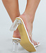Weiße Sandalen mit Glitzerriemen und transparentem Absatz