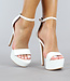 Weiße Sandalen mit Plateau und hohem Stilettoabsatz