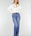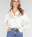 Diese weiße Bluse hat einen Satin-Look mit dezentem Glanz. Die Bluse hat lange Ärmel mit Manschetten, einen klassischen Hemdkragen und eine Knopfleiste vorne. Der geschmeidige Stoff sorgt für einen eleganten und stilvollen Look.