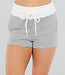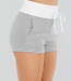 Diese kurzen gestreiften Jogging-Shorts sind aus weichem, dehnbarem Stoff mit hoher Taille gefertigt. Der breite Bund ist mit einer Schleife verschlossen, die an den Enden mit silberfarbenen Nieten besetzt ist. Die Shorts haben zwei seitliche Einschubtaschen und einen engen Sitz an der Hüfte. Perfekt für ein lässiges Outfit!