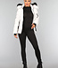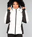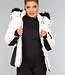 Diese Jacke hat lange Ärmel mit Verbindungsbündchen am Ende, die auch Daumenlöcher haben. Diese Manschetten sorgen dafür, dass der Wind nicht durch die Ärmel dringt. Sie ist innen gesteppt, was sie schön warm macht. Auf der Vorderseite befinden sich ein Reißverschluss und zwei Reißverschlusstaschen. Auf dem linken Ärmel befindet sich eine zusätzliche Reißverschlusstasche. Die Jacke hat auch eine Kapuze mit Kunstfellkragen und Druckknöpfen. Sie wird mit einem festen, verstellbaren Taillengürtel geliefert.