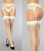 Dieser Strapsgürtel wird Ihr Dessous-Set vervollständigen! Er ist aus Spitze gefertigt und die Strümpfe sind einfarbig weiß und leicht durchscheinend. Oberhalb des Knies befindet sich ein breiter weißer Rand, der mit einer Wellenform versehen ist.