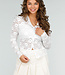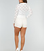 Dieses weiße Spitzentop ist aus einem Stretch-Stoff gefertigt und hat ein Futter im Oberteil, damit es dort nicht durchscheint. Das Spitzenmuster verleiht ihm einen femininen Touch, während der Kragen und der Knopfverschluss auf der Vorderseite für ein schickes Finish sorgen. Der durchscheinende Stoff an den Ärmeln macht es zu einem vielseitigen Kleidungsstück, das sowohl elegant als auch gewagt getragen werden kann. Für einen modischen Look lässt es sich perfekt mit hoch taillierten Hosen oder Röcken kombinieren, für einen dezenteren Look kann man es auch unter einem einfachen Oberteil tragen.