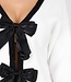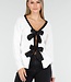 Weißer Cardigan mit schwarzen Schleifen und langen Ärmeln