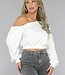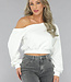Weißer One-Shoulder-Pullover