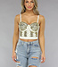 Dieses Balconette-Top ist auf der Vorderseite wunderschön mit goldenen Nieten verziert. Das Oberteil hat verstellbare Spaghettiträger und am Rücken einen Hakenverschluss, der aus fünf Haken besteht, die Sie in vier Positionen einstellen können. Die Cups des Bustiers sind mit einem Bügel versehen und haben eine schöne Passform.