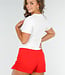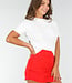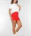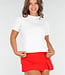 Dieses weiße Oberteil ist ein Basic-T-Shirt mit kurzen Ärmeln und einer lockeren Passform. Der Stoff ist dehnbar, sodass er sich mit Ihnen bewegen kann. Das Oberteil hat einen Rundhalsausschnitt und einen geraden Saum. Die Ärmel fallen auf halber Höhe des Oberarms herab. Dank der Kombination aus Stretchanteil und lockerer Passform eignet sich das Oberteil für den Alltag oder als Unterlage zu anderen Kleidungsstücken.
