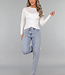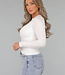 Dieses Oberteil ist aus einem feinen, weichen Stretch-Stoff gefertigt. Es hat einen hohen Rundhalsausschnitt und lange Ärmel. Vorne hat es ein hübsches, in Falten gelegtes Überlappungsdesign. Dadurch läuft der untere Teil des Tops in einem einzigartigen V aus. Es ist einfarbig und daher leicht zu kombinieren.