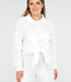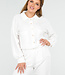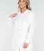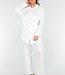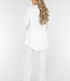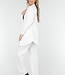 Dieses dehnbare weiße Set besteht aus einer luftigen, abgerundeten Bluse mit Hornknöpfen und einer geraden Hose mit Gummibund. Die Bluse hat lange Ärmel, übergroße Taschen und Manschetten. Der Crinkle-Stoff verleiht dem Set eine lässige Wirkung und sorgt für einen angenehmen Tragekomfort. Die Hose mit geradem Bein fällt sanft und ist perfekt für warme Tage. Tragen Sie es als kompletten Look oder kombinieren Sie die losen Teile mit anderen Basics für ein abwechslungsreiches Outfit.