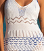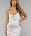 Dieses Kleid ist gehäkelt und eignet sich perfekt für einen Tag am Strand oder um es über einem Bikini zu tragen. Das Kleid hat Spaghetti-Träger und Rüschen am unteren Rand. Das Kleid ist eng anliegend und geht bis unter das Knie.