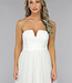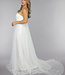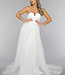 Dieses schöne Kleid ist trägerlos und besteht aus einem Netzstoff. Das Oberteil hat ein hübsches kleines V-Detail und das Oberteil hat einen Silikon-Anti-Rutsch-Rand, so dass es nicht abrutschen wird. Der Rock des Kleides ist ausgestellt und hat einen schlichten weißen Innenrock, damit er nicht durchscheint. Das Kleid ist auch in der Taille tailliert, so dass es gut sitzt. Auf der Rückseite ist ein Schleier aus dem gleichen Netzstoff angebracht. An der linken Seite befindet sich ein blinder Reißverschluss, der das An- und Ausziehen des Kleides erleichtert.