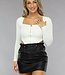 Weißes langärmeliges Ripp-Top mit Reißverschluss