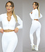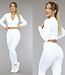 Weißes langärmeliges Sport-Top mit Reißverschluss