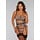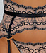 Dieses Dessous-Set besteht aus einem weißen Bügel-BH aus Mesh und einem Tanga mit schwarzen Stickereien. Der BH hat schwarze, verstellbare Träger mit kleinen, goldfarbenen Schiebereglern und einen doppelten Hakenverschluss auf der Rückseite. Der passende String ist aus weißem Mesh mit schwarzem, besticktem Einsatz und kann mit kleinen goldfarbenen Schiebern an der Seite verstellt werden. Über dem Tanga wird in der Taille ein Strapsgürtel getragen, der hinten mit drei Hakenverschlüssen geschlossen wird. Am unteren Ende des Strapsgürtels befinden sich verstellbare Bänder, die zur Befestigung von Strümpfen verwendet werden können. Die Strümpfe sind in diesem Set nicht enthalten.