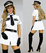 Dieses Kleid ist etwas kürzer geschnitten und hat kurze Ärmel. Vorne hat es einen Knopfverschluss mit fünf Knöpfen. Es hat zwei kleine Brusttaschen und zwei normale Taschen. Das Kleid ist mit mehreren Emblemen versehen. Die Krawatte hat ein elastisches Band, mit dem man sie um den Kopf legen kann. Die Mütze ist verstellbar. Dazu gehört ein verstellbarer Gürtel in Lackoptik, den man durch die beiden Schlaufen in der Taille stecken kann. Die beiden Handschuhe haben Finger und passen gut.