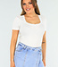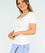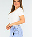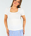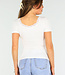 Dieses weiche T-Shirt ist aus einem feinen Stretch-Stoff gefertigt, der sich angenehm an den Körper anschmiegt. Die Rippenstruktur verleiht dem Shirt einen verspielten Effekt, während der Rundhalsausschnitt mit einem dezenten Spitzenbesatz versehen ist. Perfekt für warme Tage.